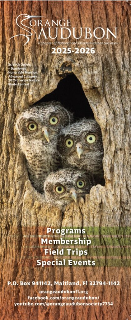 When you join Orange Audubon Society, you have a three-way membership in OAS, Audubon Florida and National Audubon Society, and will receive publications from all three. Joining directly through Orange Audubon Society makes your membership “chapter-generated,” and the $20 base membership is returned to OAS. Renewing through OAS allows your local chapter to keep all but the annual base $20 membership dues.